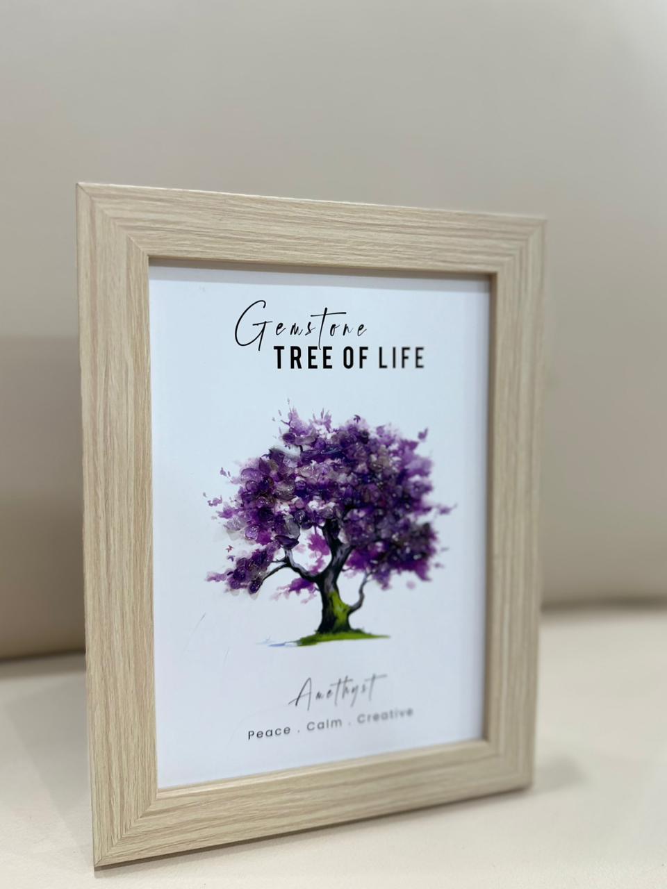 The Tree of Life — Amethyst frame by Taasya represents calm, clarity, and spiritual balance. Handcrafted with real amethyst chips and carefully wired branches, this piece brings the soothing energy of the stone into your space. Amethyst is known for easing the mind, supporting intuition, and creating a sense of peaceful grounding.