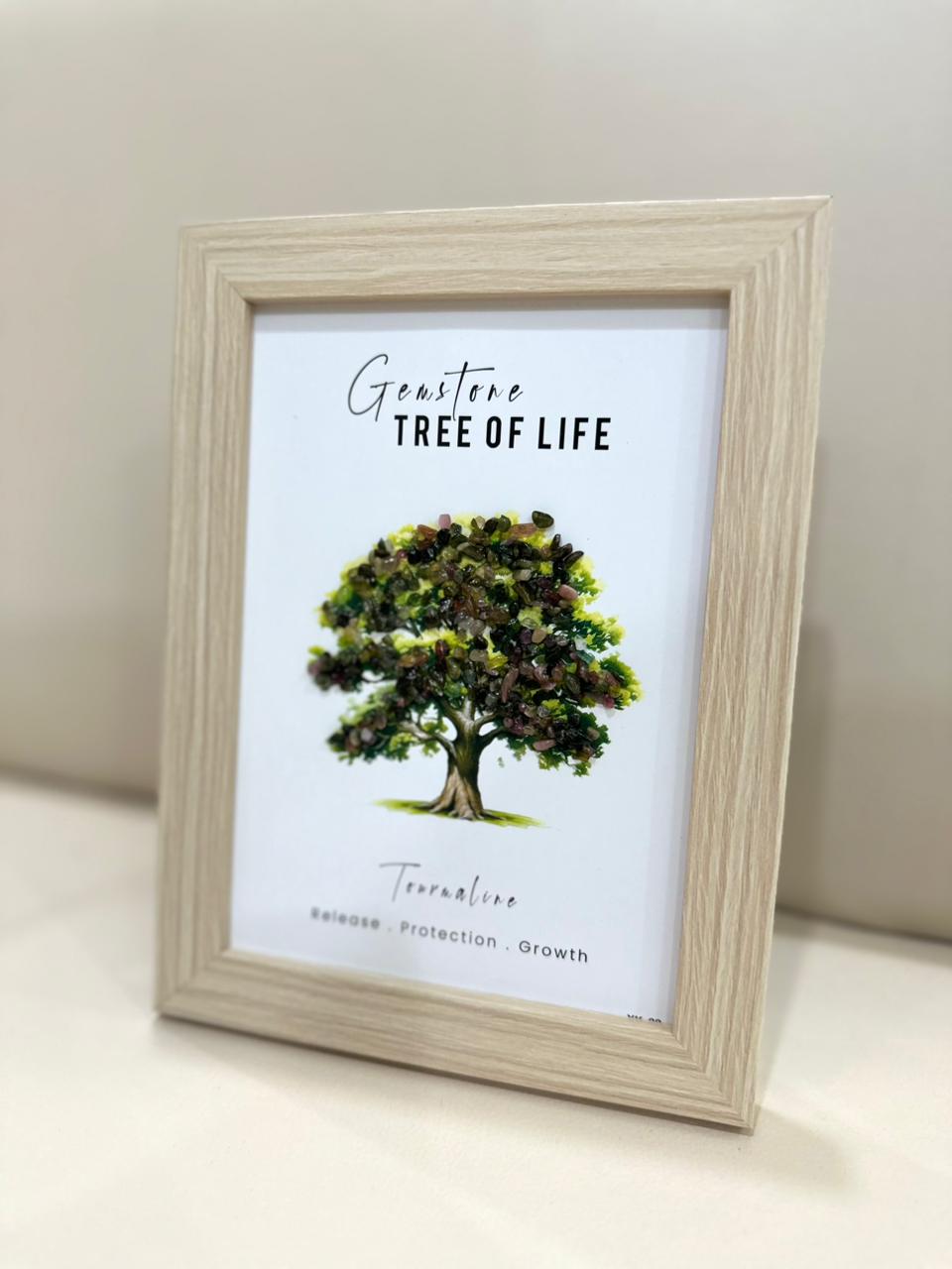 The Tree of Life — Tourmaline frame by Taasya represents grounding, protection, and strength. Crafted with genuine tourmaline stones and hand-shaped branches, it channels stability and shields the space with its natural grounding energy. Tourmaline is known for absorbing negativity and promoting clarity, making it an ideal piece for workspaces, entryways, or restful corners.